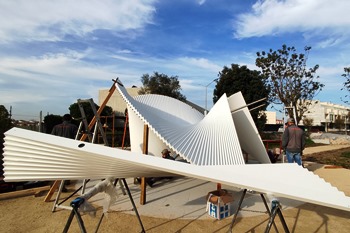 O escultor Ascânio MMM (na imagem da direita), que foi ainda novo para o Brasil, em concreto para o Rio de janeiro, onde se formou com arquitecto tendo também uma vida ligada às artes, é o autor da nova obra de arte que vai pontificar no espaço público de Esposende. O emigrante que, desde 1999, tem no concelho um outro trabalho - obra intitulada “Piramidal” e que se encontra instalada no Largo do Cortinhal, desde 1999, na margem do Cávado, em Fão - vai passar a ter outra escultura nessa sua vila Natal. Refere uma informação da Câmara Municipal que o presidente da autarquia, Benjamim Pereira, reuniu-se recentemente com Ascânio MMM (nome profissional de Ascânio Maria Martins Monteiro) e este “ ofereceu ao Município uma obra de arte, que se encontra já instalada, na envolvente do Templo do Bom Jesus, em Fão. A Alameda do Bom Jesus, está a ser intervencionada, numa empreitada de requalificação orçada em 610 mil euros.“A operação de montagem da obra de alumínio lacado, que foi construída no concelho, numa empresa da freguesia de Antas” já está concluída no local preparado pelo escultor que deverá inaugurar o trabalho quando regressar a Portugal, no próximo verão. Conclui a informação da autarquia: “A empreitada da requalificação da Alameda do Bom Jesus, que se integra no Plano de Ação de Regeneração Urbana (PARU), corresponde a uma antiga aspiração das gentes de Fão, pelo que representa para a comunidade, sendo que o espaço é também palco privilegiado de eventos, como a Festa do Bom Jesus, a feira semanal e a Festa da Cerveja e do Marisco, razões que levaram o Município a assumir a intervenção”.