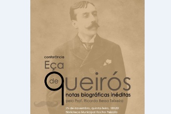 Esta quinta-feira, 25 de novembro, passam 176 anos do nascimento, na Póvoa de Varzim, daquele que muitos consideram o maior romancista português de todos os tempos: Eça de Queiroz. Na Biblioteca Municipal Rocha Peixoto a data não vai passar em claro e às seis e meia da tarde vai ocorrer uma conferência por Ricardo Bessa Teixeira, da Associação Portuguesa de Genealogia que mostrará notas biográficas inéditas sobre Eça.