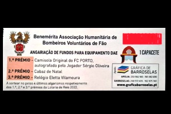 Os Bombeiros Voluntários de Fão, Esposende, têm em curso uma campanha de angariação de fundos para a aquisição de um “Desfibrilhador automático externo” (com a mesma função do que está na fotografia embora o modela possa não ser aquele) que pode ser fundamental para salvar a vida a alguém que esteja em paragem cardiorrespiratória. Para tal a Associação Humanitária lançou rifas a um euro que podem garantir prémios oferecidos por comerciantes locais, desde uma camisola do FC do Porto autografada pelo jogador Sérgio Oliveira até um cabaz de Natal ou um relógio. Os bombeiros já agradeceram todos os apoios e dizem que caso seja obtido um valor superior ao necessário para a compra da máquina de reativação do coração, será aplicada a verba remanescente na aquisição de equipamento de proteção individual para os operacionais