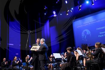 O maestro Paulo Veiga recebeu o prémio “António Lopes da Conceição”, a maior distinção da Associação da Banda Musical da Póvoa de Varzim e que agraciou o músico pela sua “dedicação e entrega” e também “desempenho”. O reconhecimento fez parte da VII gala da instituição que encheu o Cine-Teatro Garrett no passado domingo tendo o presidente da Câmara, Aires Pereira qualificado da “mais elementar justiça”a concessão do prémio a Paulo Veiga até pelo que tem feito pela música no concelho. Em 2022 a Associação da Banda vai completar 75 anos e o líder da autarquia já disse que o município vai associar-se às celebrações especiais da efeméride.