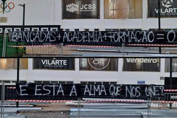 Um grupo de adeptos do Varzim colocou esta noite várias tarjas com recados para a direção do clube. Aproveitando as vedações das obras em curso na bancada poente, os elementos da claque "Os de 1915" protestou contra a possibilidade de criação de uma SAD. O movimento de jovens adeptos escreveu mensagens como "Bancadas+academia+formação=0” e deixou perguntas como “É esta a alma que une?" Edgar Pinho, presidente da Direção do emblema poveiro, também é visado.