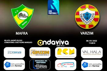 É às 11 horas da manhã deste sábado que o Varzim joga em Mafra para a jornada 17 da 2.ª Liga. Os poveiros ocupam a última posição e estão em situação aflitiva enquanto o adversário ocupa um tranquilo nono lugar com 23 pontos, mais seis do que os varzinistas. A Onda Viva como sempre transmite o relato da partida através da narração de André Veloso e os comentários de José Pedro Marques. O árbitro do jogo será Carlos Macedo, da Associação de Futebol de Braga.