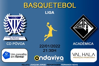 O Desportivo da Póvoa tem este sábado em casa um encontro para a principal Liga sénior masculina de basquetebol, mas desta vez a partida frente à Académica de Coimbra vai ter transmissão direta na Rádio Onda Viva. O relato que vai começar às 21h30, a partir do Pavilhão Fernando Linhares de Castro, terá a narração de Joaquim Jorge e os comentários de Fernando Novo. Nesta altura os poveiros ocupam o sétimo posto com 21 pontos mais três do que os conimbricenses. E o técnico poveiro José Ricardo não está à espera de um jogo fácil. Para ouvir na Onda Viva às 21h30