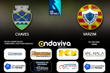 Às seis da tarde também para a 2.ª Liga pode ouvir aqui na Onda Viva o relato do Chaves X Varzim, um duelo em atraso e que opõe o sexto classificado - o clube trasmontano tem 30 pontos e está seis do primeiro lugar de subida - ao Varzim que é o penúltimo com somente 12 pontos. O treinador varzinista Pedro Miguel assegura que o plantel está motivado para oferecer a primeita vitória fora de casa aos adeptos alvinegros.Pode acompanhar as incidências do jogo através da emissão da Onda Desportiva que terá narração de André Veloso e comentários de José Pedro Marques.O árbitro do jogo será Miguel Nogueira, de Barga, o mesmo juiz que já esta temporada dirigiu o FC Porto B 2 X Varzim 2. Desta feita, em Trás-os-Montes os assistentes serão Ricardo Santos e Nuno pereira e André Neto o quarto árbitro