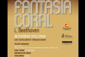 Esta terça-feira às nove e meia da noite, no Cine-Teatro Garrett, a Escola de Música da Póvoa de Varzim comemora o 33.º aniversário do Coral Ensaio. O concerto intitulado “Fantasia Coral”, de. Beethoven, com a atuação do grupo aniversariante e solos de Raul da Costa, Maria João Matias, Lenabel Pinheiro, Sara Amorim, Pedro Rodrigues, João Sá e Rui Silva. Tiago Carriço vai dirigir, ainda, a Sinfonieta Pró-Música. Os bilhetes podem ser levantados no Garrett.