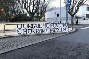 Várias tarjas de apoio ao Varzim surgiram nas ruas da Póvoa de Varzim na manhã desta quarta-feira. Numa iniciativa que se presume ser da autoria dos adeptos do clube alvinegro, aparecem mensagens como “duas cores, um amor”, “orgulho poveiro é honrar o Varzim” e também alusivas ao jogo de amanhã, frente ao Farense, com as informações da hora e local. O coreto da Praça do Almada, junto à Basílica do Sagrado Coração de Jesus e às Escolas Secundárias Eça de Queirós e Rocha Peixoto foram alguns dos locais escolhidos para apoiar o Varzim e apelar à comparência dos poveiros no estádio.
