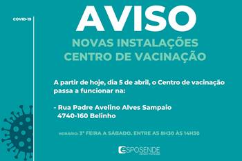 O Centro de Vacinação de Esposende tem a partir desta terça-feira novas instalações. Segundo revelou a autarquia, o serviço passa a estar disponível na Rua Padre Avelino Alves Sampaio, em Belinho, onde funcionava o antigo centro de saúde naquela freguesia. O espaço funciona apenas de terça-feira a sábado entre as 8h30 e as 14h30.