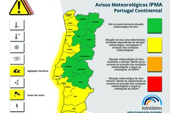 O vento vai persistir hoje em excesso de velocidade o que leva o Instituto Português do Mar e da Atmosfera (IPMA) a manter grande parte do território português sob “aviso amarelo” . A"Nortada" desta vez não ficará só pela Póvoa de Varzim e prolonga-se por quase toda a faixa costeira e terras altas. Mas por cá, o sopro poderá atingir os 70 quilómetros por hora, o que aconselha à tomada de precauções com a segurança de estruturas ao vento e janelas abertas. Além do mais, a temperatura máxima vai descer o o mar também anda agitado, conforme se verifica na previsão do IPMA (na imagem).