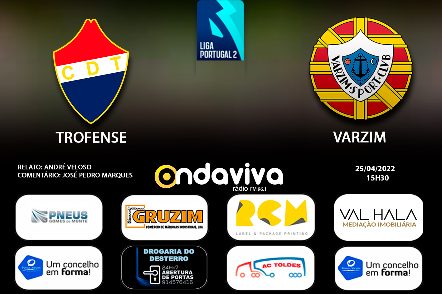 O Varzim joga esta tarde na Trofa uma partida importante na luta pela manutenção na II Liga. O clube poveiro está no lugar de play-off com 29 pontos, mais um do que o adversário de hoje e menos um que o Covilhã, que empatou ontem como o Leixões. O treinador dos alvinegros espera muitas dificuldades e admite que há a pressão de obter pontos frente a um adversário que acaba de mudar de treinador e vai obrigar a estar muito alerta. Pedro Miguel admitiu na antevisão que será um jogo de emoções fortes, mas o treinador quer os jogadores tranquilos para a missão que terão pela frente. Saliente-se que a Trofa fica a pouco mais de vinte quilómetros, mas já não há bilhetes para mais adeptos do Varzim que gostariam de estar presentes. Por isso mesmo, também para quem não vai estar, Pedro Miguel deseja conquistar a vitória. Já sabe que pode contar com o relato na Rádio Onda Viva através da narração de André Veloso e comentários de José Pedro Marques a partir das 15h30.
