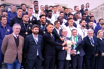 Uma comitiva do Rio Ave foi recebida esta tarde nos Paços do Concelho. O autarca de Vila do Conde fez questão de receber na Câmara a equipa principal que acaba de sagrar-se campeã da II Liga e subir ao escalão principal. Vítor Costa e restante executivo tiveram oportunidade de apreciar o troféu conquistado e o edil fez questão de parabenizar sobretudo os jogadores pelo feito alcançado, agradecendo em nome do concelho o difícil trabalho desenvolvido em campo.
