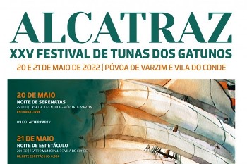 Aí está o Alcatraz – XX V Festival de Tunas dos Gatunos, Gatunos é a designação da Tuna Académica do Politécnico do Porto e vai principiar esta sexta-feira às 22 horas no anfiteatro junto à Casa da Juventude de Póvoa de Varzim, com uma “Noite de serenatas”. A entrada é gratuita. O evento vai prosseguir no sábado, mas no Teatro municipal de Vila do Conde com um concurso de tunas outras atuações. A festa final que será feita na madrugada de domingo, no Campus