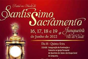 A freguesia de Junqueira vive dias intensos com as festas em Honra do Santíssimo Sacramento. Na passada quinta-feira já houve um concerto e ontem à noite decorreu a procissão de vela. Este sábado há uma eucaristia às 18h30 e à noite chega a atuação de Bárbara Bandeira, a partir das 22h, fechando o dia com uma sessão de fogo de artifício piromusical. O domingo reserva dois momentos altos com a eucaristia de louvor às 11h e a procissão que estará nas ruas depois das quatro da tarde. Neste dia merece realce a presença das bandas de música da Póvoa de Varzim e de São Paio de Antas logo pela manhã.