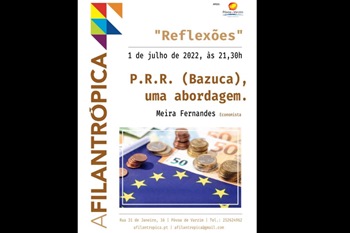 Na Cooperativa Cultural A Filantrópica na noite desta sexta-feira decorre uma conferência pelo economista Meira Fernandes que vai falar sobre o PRR- o Plano de Recuperação e Resiliência – pacote de apoios da União Europeia que ficou popularmente conhecida por “bazuca”.