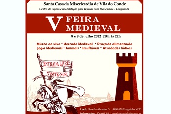 Esta sexta-feira e amanhã sábado decorre a Feira Medieval organizada pela Santa Casa de Vila do Conde nos jardins do seu Centro de Apoio à Pessoa com Deficiência que se situa em Touguinha, na rua do Abrantes.