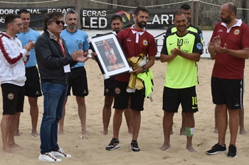 A jornada do campeonato de elite de futebol de praia realizada em Aguçadoura ficou também marcada pela homenagem ao jogador do Varzim Palhinha que esteve no clube alvinegro desde 2010, quando foi criada a secção. Humberto José da Silva Carneiro, assim é o nome do atleta, contou ao repórter Fernando Novo como é que viveu esse momento no areal do campo AG81 com a presença do presidente do Varzim, Edgar Pinho (ouça no noticiário)