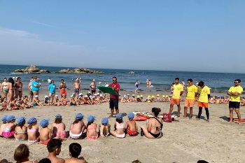 Dezenas de crianças que estavam na Praia da Couve, em Apúlia, Esposende, muitas delas a frequentarem ATL's (Atividades de Tempos Livres) receberam ontem uma aula, em pleno areal, sobre os perigos existentes no mar e as regras que se devem seguir no Domínio Público Marítimo.