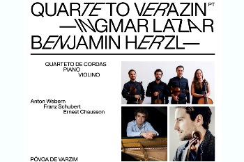 Esta quarta-feira na edição 44 do Festival Internacional de Música da Póvoa de Varzim pode ouvir o seu quarteto residente, o Verazin, criado pela Associação Pró-Música há 15 anos. A noite no cine-teatro Garrett proporciona ainda a audição de dois jovens, um pianista, Ingamar Lazar, e um violinista Benjamim Herz. O programa aqui apresentado pelo diretor do Festival, Raul da Costa, começando pelo quarteto da Póvoa que está a celebrar as bodas de cristal (ouça no noticiário) O quarteto Verazin é formado por Diogo Coelho e Jorman Torres (ambos no violino), Emídio Ribeiro (viola d’arco) e Ana Luísa Marques (violoncelo). O concerto começa às 21 horas no Cine-teatro Garrett e os ingressos custam cinco euros