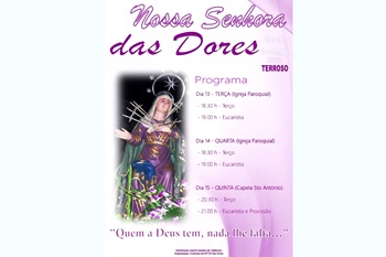 Na noite desta quinta-feira na freguesia de Terroso na Póvoa de Varzim sai à rua a procissão em honra de Nossa Senhora das Dores. Será às 21 horas , mas antes às 20h30 haverá a recitação do terço na capela de Santo António. A Câmara da Póvoa de Varzim já lançou um aviso aos automobilistas que “para garantir as adequadas condições de segurança”, será interditada a “circulação de trânsito, de todos os veículos, na Rua dos Pedrais, Rua de Vilar e Rua da Igreja”, a partir das 21 horas