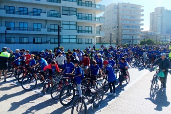 Mais de duas centenas de alunos, professores e encarregados de educação ligados ao Agrupamento Flávio Gonçalves pedalaram, esta manhã, num Passeio de Cicloturismo comemorativo do Dia Europeu do Desporto Escolar. O pelotão azul, com jovens do 4º ao 9º ano, percorreu cerca de 8 quilómetros pelas estradas e ciclovias da cidade e de Aver-o-Mar, com destaque para a passagem pelas escolas EB1 Nova, Sininhos e Desterro.