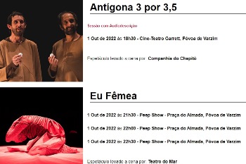 Mais logo, a partir das 18h30, a Companhia do Chapitô vai estar no Cine-Teatro Garrett com a peça ‘Antígona’, na continuidade de uma antiga relação que Eduardo Faria, da Associação Varazim, organizadora do certame, faz questão de preservar.