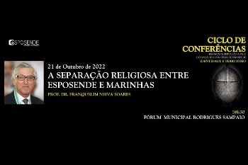 Hoje ao final da tarde pode acompanhar uma conferência que tem um título desafiador - “A separação religiosa entre Esposende e Marinhas“ - e que vai ser proferida por Franquelim Neiva Soares, no âmbito do ciclo preparado pelo município para mensalmente assinalar a passagem dos 450 anos da criação do concelho.