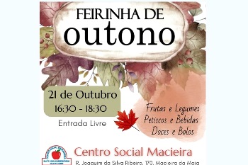 O tempo passa a correr e não tarda muito está aí o Natal e em Macieira da Maia,Vila do Conde, o Centro Social da Santa Casa quer levar as crianças a uma atividade natalícia, mas necessita de fundos. Para isso, refere uma informação da Misericórdia, esta sexta-feira entre as quarto e meia e as seis e meia da tarde a comunidade está convidada a passar por uma “Feirinha de Outono” e apreciar os produtos caseiros que vão estar à venda no local, desde frutas a legumes, petiscos salgados e bebidas, assim como doces e bolos caseiros “preparados com a participação de todo o Centro Social e famílias”.