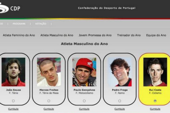 Rui Costa volta a encabeçar a lista de nomeados para o prémio de atleta masculino do ano da Confederação do Desporto de Portugal, galardão que venceu nos dois últimos anos quando derrotou o futebolista Cristiano Ronaldo, entre outros. O corredor poveiro terá como oponentes o piloto Paulo Gonçalves, o remador Pedro Fraga, o tenista João Sousa e o mesatenista Marcos Freitas. Os cinco finalistas vão estar submetidos à votação online do público (com um peso de 60 por cento) e à votação dos presentes na Gala do Desporto, cuja 19ª edição decorre no Casino Estoril no dia 12 de Novembro.