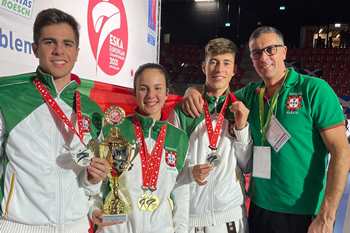 Os karatecas do CKA Póvoa de Varzim já começaram a subir ao pódio no Campeonato Europeu de Karate Shotokan. O primeiro dia de competição na Suíça fica marcado pelo título de campeã europeia obtido pela cadete Eva Flores em kumite individual. A jovem poveira ajudou ainda a equipa portuguesa a alcançar o triunfo na prova coletiva. Em destaque estiveram também os atletas Rodrigo Morim e Luciano Novo, que integraram a equipa masculina de kumite cadete e obtiveram o título de vice-campeões europeus. Na comitiva está também integrado o mestre Vítor Poças e outros jovens que entram em ação este sábado.
