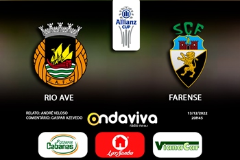 O Rio Ave recebe esta 3.ª feira o Farense em jogo da Taça da Liga em futebol. A partida terá como árbitro Manuel Oliveira, da Associação de Futebol do Porto. Vila-condenses e algarvios têm três pontos acumulados no grupo B menos três do que o Sporting quer à mesma hora recebe o Marítimo que ainda não pontuou. Refira-se que o primeiro critério de desempate na classificação é a diferença no número de golos.