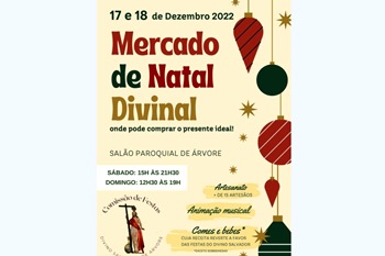 É este sábado e domingo que decorre no salão paroquial de Árvore, Vila do Conde, um “Mercado de Natal Divinal” com mais de 15 artesãos, animação musical e comes e bebes.