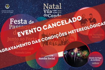 O programa de Passagem de Ano junto ao Forte de São João foi cancelado devido às condições meteorológicas. Face ao agravamento das previsões, com chuva forte, vento e agitação marítima esperadas para a noite de sábado, 31 de dezembro, e madrugada do dia 1 de janeiro, domingo, a Câmara de Vila do Conde cancelou as celebrações numa decisão tomada na sequência das recomendações e avisos emanados pelo IPMA e Proteção Civil.