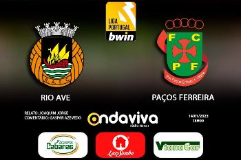 É às seis da tarde que para a 1.ª Liga em futebol, o Rio Ave recebe o Paços de Ferreira e pode escutar tudo na Onda Viva através da descrição sonora por Joaquim Jorge e comentários de Gaspar Azevedo.