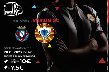 O Varzim colocou hoje à venda os bilhetes para o jogo em Felgueiras na próxima sexta-feira às sete da tarde, em mais uma jornada da Liga 3. Os ingressos custam 7,5 euros, mas quem quiser adquirir o pacote que inclui a viagem de autocarro (ida e volta) só tem de pagar 10 euros. Ou seja, as viagens ficam por dois euros e meio. Os dois clubes têm o mesmo número de pontos, 28, partilhando o segundo lugar do campeonato, a dois pontos do líder Lank Vilaverdense. Recorde-se que, na primeira volta, o Varzim triunfou em Fão por 3x0.
