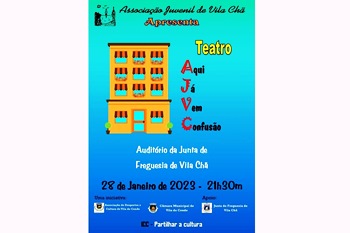Este sábado à noite há teatro em Vila Chã, Vila do Conde, no auditório da Junta. A peça chama-se “Aqui já vem confusão”, é um trabalho da Associação Juvenil da freguesia que se insere no Intercâmbio Cultural Concelhio.