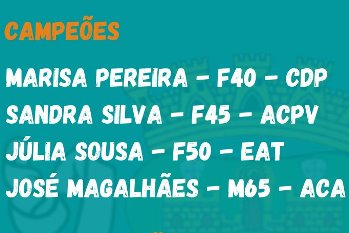 Duas atletas de clubes poveiros conquistaram o título nos Campeonatos Nacionais de Marcha em Estrada nos escalões veteranos. A prova decorreu em Buarcos, na Figueira da Foz, tendo essas vitórias sido garantidas por Marisa Pereira, do Desportivo da Póvoa, no escalão F40, e por Sandra Silva, do Atlético da Póvoa, no escalão F45.