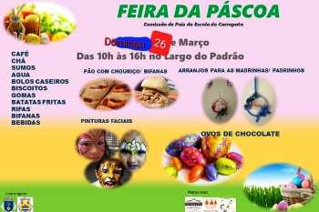 Até às quatro da tarde, no largo do Padrão, há uma “Feira da Páscoa” organizada pela Comissão de Pais da Escola da Carrapata e que terá para venda “Arranjos para madrinhas e padrinhos”, ovos de chocolate, bifanas e haverá ainda pinturas faciais.