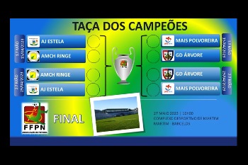 Na Taça dos Campeões, a primeira mão das meias-finais, já no próximo sábado, vai colocar frente-a-frente o Estela, da Póvoa de Varzim, e o Ringe, de Santo Tirso. Na outra partida, o Polvoreira, de Guimarães, recebe o Árvore, de Vila do Conde.