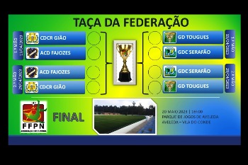 Na Taça da Federação, as meias finais serão nas mesma datas e vão colocar frente a frente duas equipas de Vila do Conde, o Gião e Fajozes . O Tougues, também emblema vila-condense recebe o Serafão, de Fafe. Tal como na prova dos Campeões a segunda ronda será a 29.
