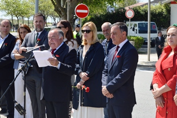 Na cerimónia junto ao conjunto de esculturas, nos Cais dos Assentos, que recorda os combatentes locais que partiram para guerra e sobretudo os 42 de Vila do Conde que já não regressaram vivos; a toda essa geração, o presidente da Câmara, Vítor Costa, quis dizer obrigado (idem)