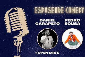 O Auditório Municipal de Esposende acolhe na noite desta quinta-feira mais um espetáculo “Stan-up comedy”. Em palco vão estar Daniel Carapeto e Pedro Sousa, mas o espetáculo tem um período de “open mics”, literalmente microfone aberto, para quem se julgar com jeito para fazer o seu número deste género de comédia.