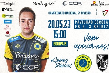 A equipa B do Póvoa Andebol joga, hoje, às 15h, frente ao líder Vitória Sport Clube. A derradeira partida da 2.ª divisão do Campeonato Nacional é no pavilhão da EB 2,3 de Beiriz. A caminhada de sonho deste plantel está a terminar e o apuramento para a nova competição, a denominada divisão de honra, está mais próxima que nunca. O guarda-redes Carlos Moreira admite que vai ser um jogo muito difícil, mas garante que a equipa vai dar tudo em campo. A receita é simples: ser muito aguerrido na defesa e, depois, no ataque, marcar o máximo de golos.