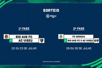 O Rio Ave já conhece o primeiro adversário da nova temporada. O sorteio da Taça da Liga, realizado ao final da tarde de ontem, ditou para os rioavistas um duelo em casa com o Académico de Viseu (da II Liga). Caso vença o jogo inaugural, o Rio Ave já sabe que, na 2.ª fase da competição, irá repetir o duelo de há duas épocas, uma vez que volta a jogar em Arouca (da I Liga), num jogo que se realizará a 29 ou 30 de julho.