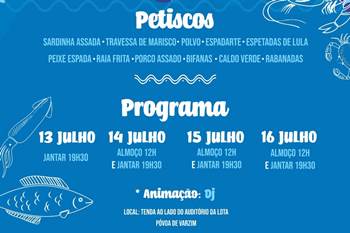 A iniciativa tem como protagonistas sete associações e clubes poveiros, sendo uma oportunidade perfeita para saborear petiscos como sardinhas assadas, francesinhas à poveira, marisco, polvo, lulas, raia frita, porco assado, caldo verde, bifanas e a tradicional rabanada poveira. Aliados à gastronomia estão a festa e o convívio. Cada fim de semana terá um diferente tipo de animação, desde ranchos folclóricos, grupos de dança, cantores, DJ e muito mais.
