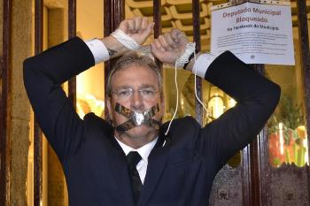 Na assembleia municipal, o deputado – o único eleito pelo partido de André Ventura na Póvoa – já tinha afirmado que Salazar proibiu o fascismo, fazendo o elogio ao ditador, e que o PCP devia ser ilegalizado. Agora, volta a protagonizar outro momento insólito: publicou várias fotografias amarrado aos portões da Câmara, com fita adesiva a tapar-lhe a boca, em protesto por ter sido bloqueado pela maioria PSD nas redes sociais do município.