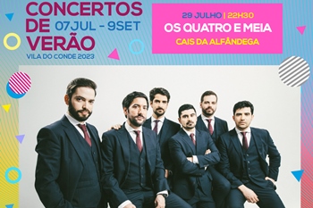 Hoje, há mais um concerto de verão em Vila do Conde. Desta vez, o palco do Cais da Alfândega é d’ “Os Quatro e Meia”. É às 22h30 e o acesso é livre. A banda de Coimbra, autora de temas como “Olá Solidão” ou “Amanhã” vem pela primeira vez a Vila do Conde.
