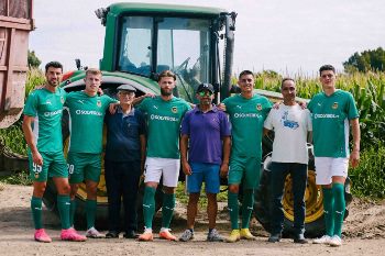 Depois da banca de peixe da Mena, desta vez foi a vez dos campos de milho de Serafim Ferreira acolherem mais uma sessão fotográfica do Rio Ave. Costinha, André Pereira, Renato Pantalon, Patrick William e Leonardo Ruiz vestiram o equipamento alternativo n.º 2 da época 2023/2024 para se associaram a mais uma atividade que diz muito a Vila do Conde: a agricultura. “Um amor que transborda e floresce nos campos”, titula o clube vilacondense na notícia que dá conta da iniciativa.