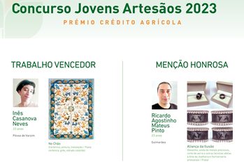 A poveira Inês Casanova Neves, de 23 anos, venceu o Concurso Jovens Artesãos 2023, inserido na 45ª edição da Feira Nacional de Artesanato de Vila do Conde. A jovem estudante de Belas Artes foi escolhida entre 27 trabalhos a concurso. Fez uma peça cerâmica, em grés e vidro colorido, inspirada na tradição dos Tapetes de Arraiolos, mais propriamente num trabalho do seu avô, desenhador de profissão, e que a autora designou por “No Chão”. Inês arrecadou um prémio de dois mil euros, atribuído pelo patrocinador do concurso, a instituição financeira Crédito Agrícola.