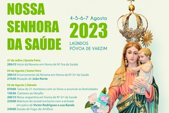 Amanhã, a missa solene em honra da Senhora da Saúde é às 10h00. Às 16h00, sai a procissão e, no final, há um concerto pela Banda Musical da Póvoa de Varzim. À noite, a partir das 22h00, volta a haver arraial popular. Desta vez, o palco é dos Santamaria. À meia-noite volta a haver fogo-de-artifício.
