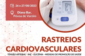Este fim de semana há rastreios cardiovasculares gratuitos no Diana-Bar. Se estiver por perto pode aproveitar para verificar a saúde do coração este sábado ou no domingo, das 9h30 às 12h30 e das 14h00 às 17h30. Em avaliação estarão parâmetros como tensão arterial, peso, altura, índice de massa corporal, glicémia e outras medidas de promoção de saúde. A iniciativa é de um grupo de Novos Fitados de Medicina da Universidade de Coimbra, tendo o apoio da Câmara Municipal da Póvoa de Varzim.