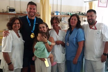 O campeão mundial João Ribeiro foi ao Hospital da Póvoa de Varzim entregar a medalha de ouro à filha que está internada no no Serviço de Pediatria e Neonatologia. O atleta de Esposende, que conquistou o título mundial de Canoagem K2 500 metros, na companha do vilacondense Messias Baptista, foi visitar a filha bebé, Clara, a quem tinha dedicado, em lágrimas, o feito alcançado no fim de semana na Alemanha. Mal regressou a casa, foi imediatamente ao encontro de quem desempenhou um estímulo decisivo para qualificar Portugal para os próximos Jogos Olímpicos. Refira-se que a menina já teve, entretanto, alta hospitalar e está a recuperar bem, segundo revelou João Ribeiro, que agradeceu a forma como o Centro Hospitalar tratou a filha Clara e a esposa Anabela.